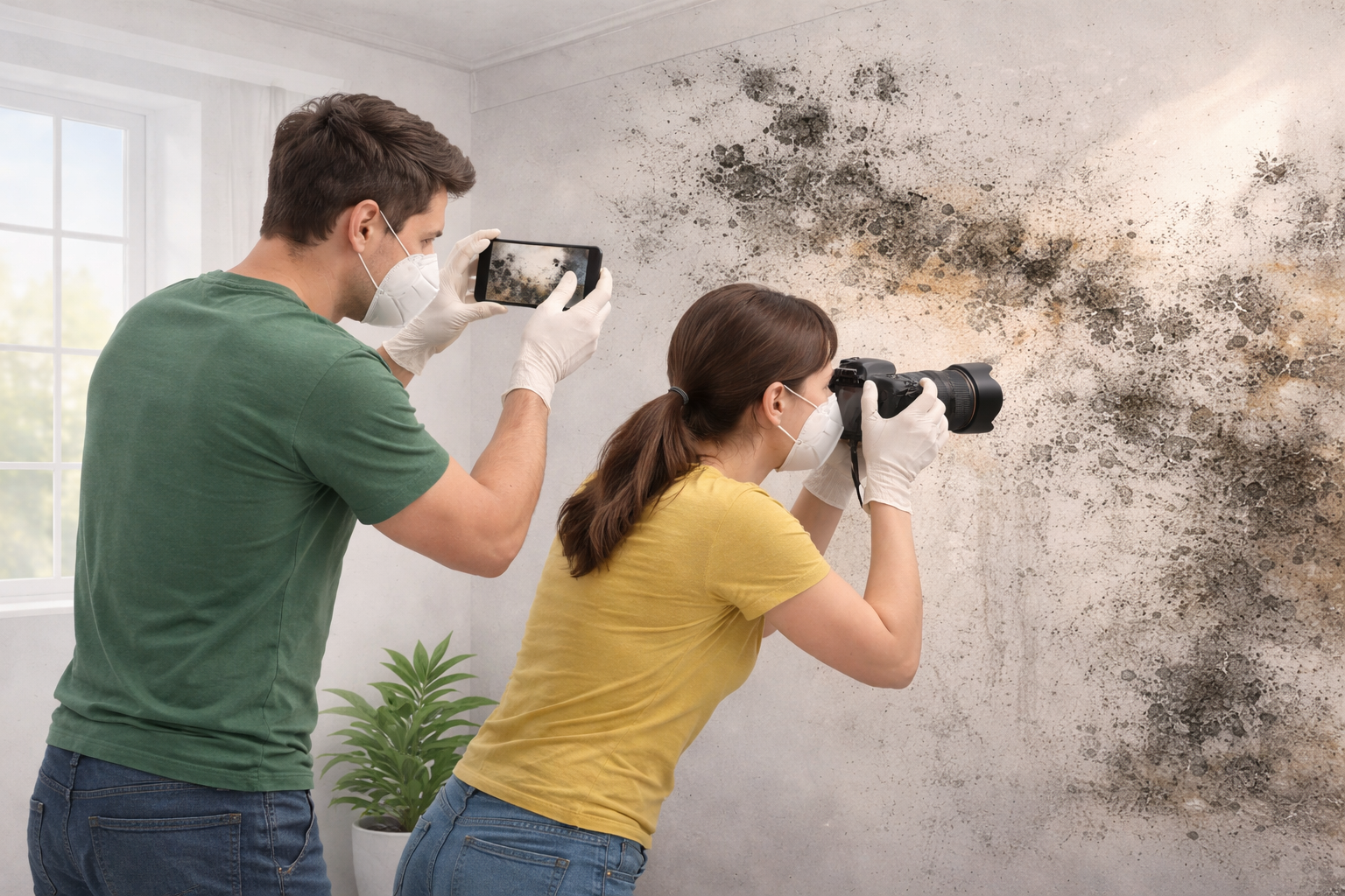 As soon as mold or water damage is discovered, take clear photographs of all affected areas. This includes visible mold growth, water stains, damaged walls, ceilings, flooring, and any sources of moisture.